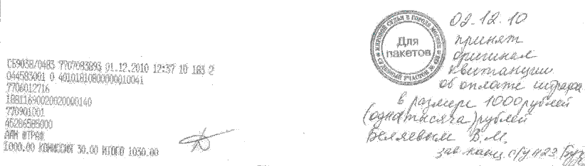 Получатель: УФК по г. Москве (УВД по ЦАО гор. Москвы, л/с 04732д44950, ОВД Тверской) ОКА ГО 45 28 65 85 000 КПП 770 901 001